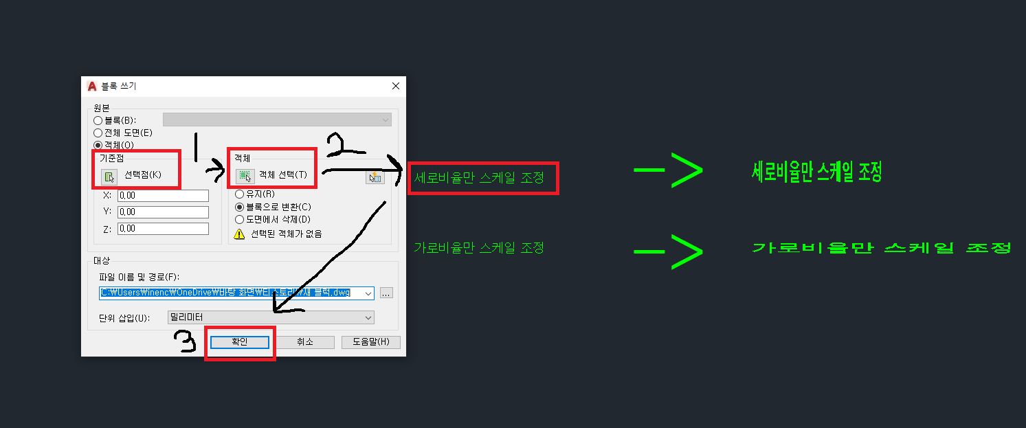 기준점 클릭 후 객체 주변 내부 원하는 곳 선택