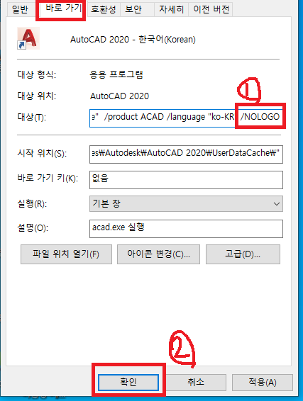 4. 캐드 실행시 로고화면 없이 바로 시작하기
